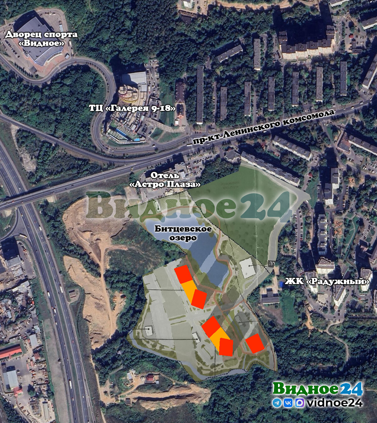 За отелем «Астро Плаза», в пойме реки Битца и рядом с Битцевским озером, планируется строительство нового жилого комплекса из пяти 19-25-этажных домов. Об этом узнали активные жители ближайших домов, которые с 2013 года борются за создание в этом месте благоустроенного Жуковского лесопарка. Тогда они также, и небезуспешно, боролись с владельцем земельного участка на пересечении М-4 «Дон» и проспекта Ленинского комсомола, который незаконно свозил туда строительный мусор с грунтом. Жители добились, чтобы суд обязал владельца участка вывезти весь строительный мусор с этого участка и вернул ему первоначальный вид. Работы по вывозу строительного мусора начались, но были приостановлены.