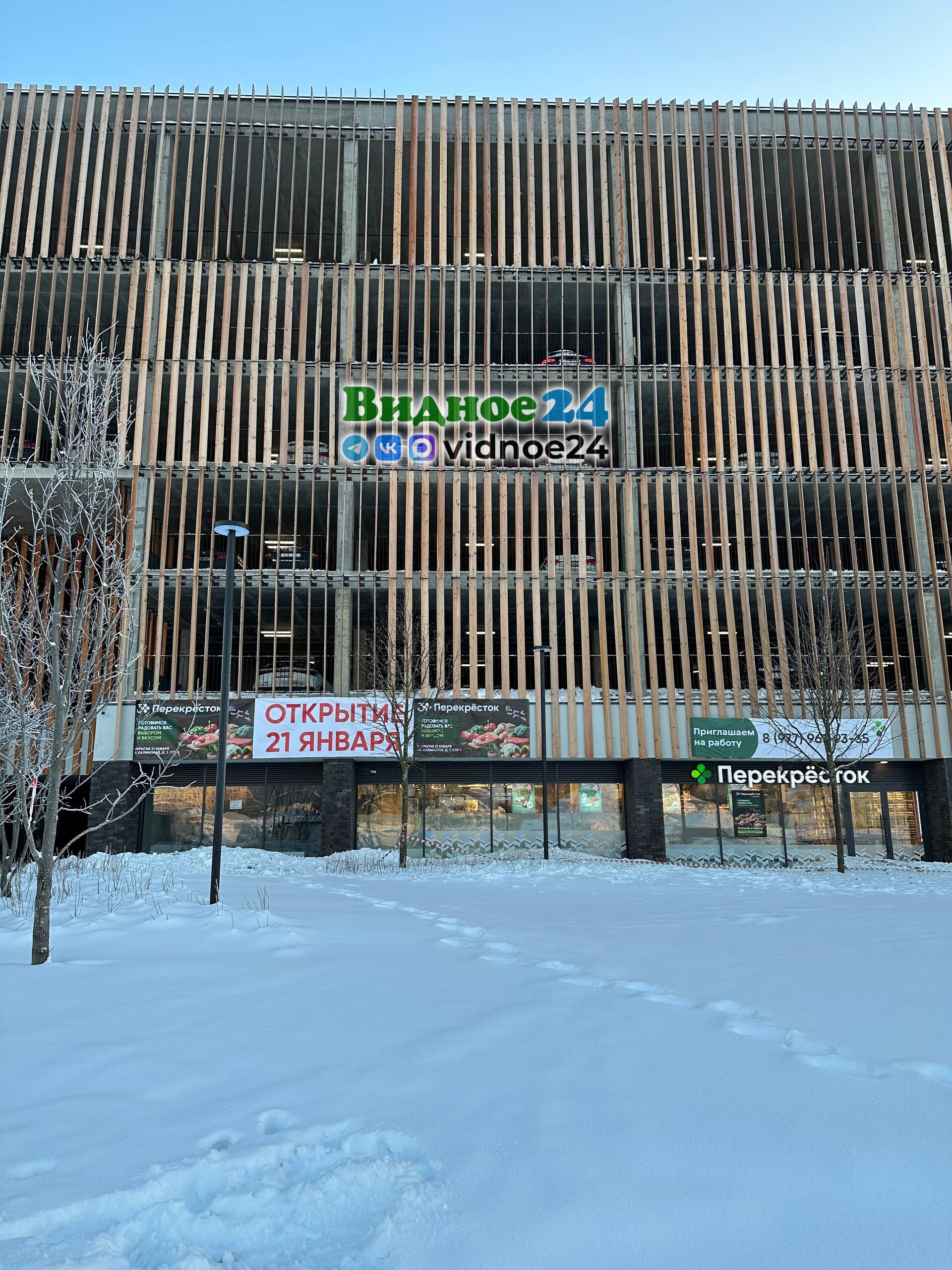 В жилом комплексе «Первый квартал» на первом этаже 6-этажного паркинга готовится к открытию сетевой супермаркет «Перекресток». Новый магазин выполнен в новом формате этой сети, то есть в нем будет небольшое кафе Select, павильон суши-бара и большой ассортимент эко-продукции. Но новый магазин будет меньше чем супермаркет «Перекресток» на Березовой улице города Видное. «Перекресток» в ЖК «Первый квартал» планируют открыть уже 21 января. Ожидаемое время работы нового магазина с 8:00 до 23:00.