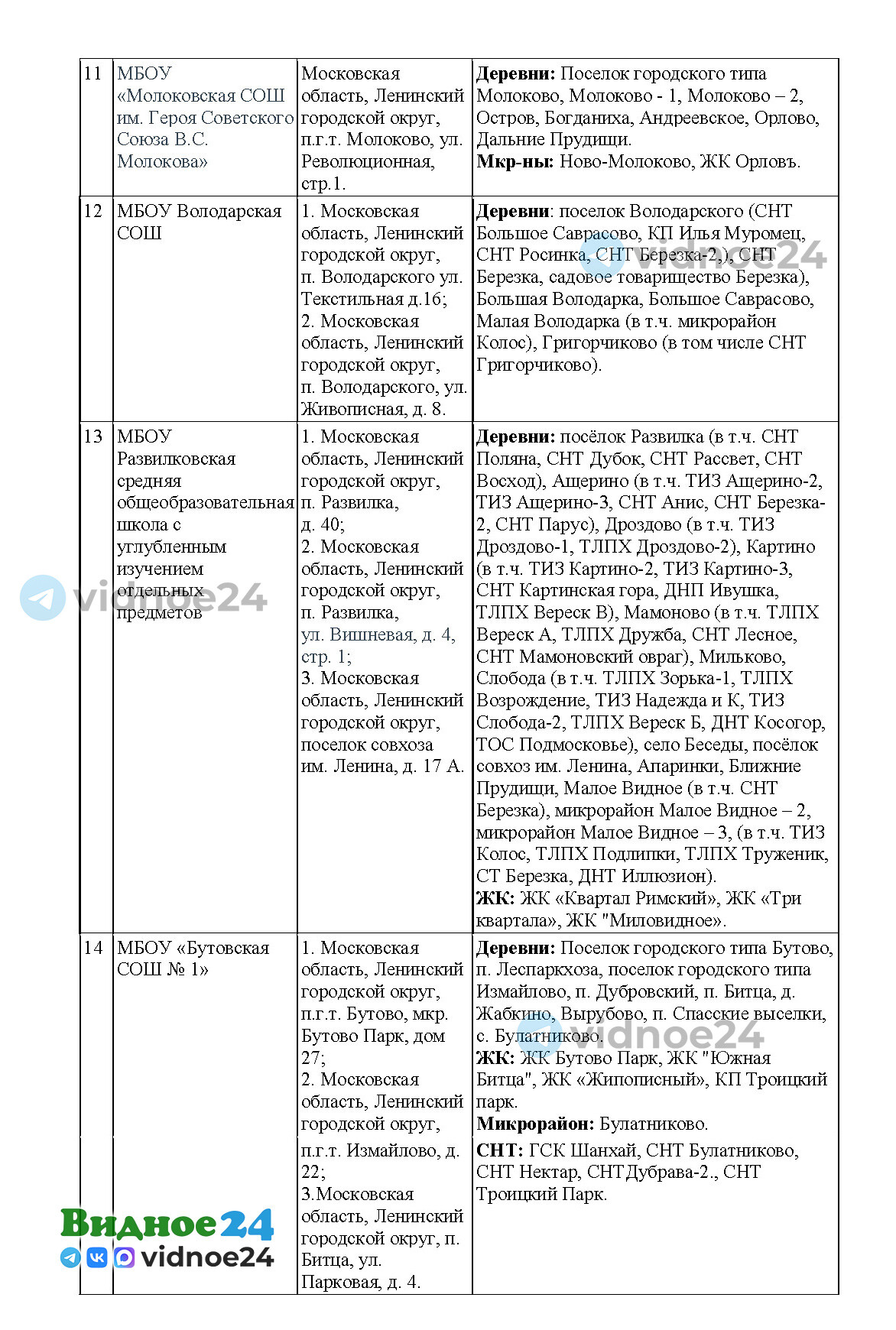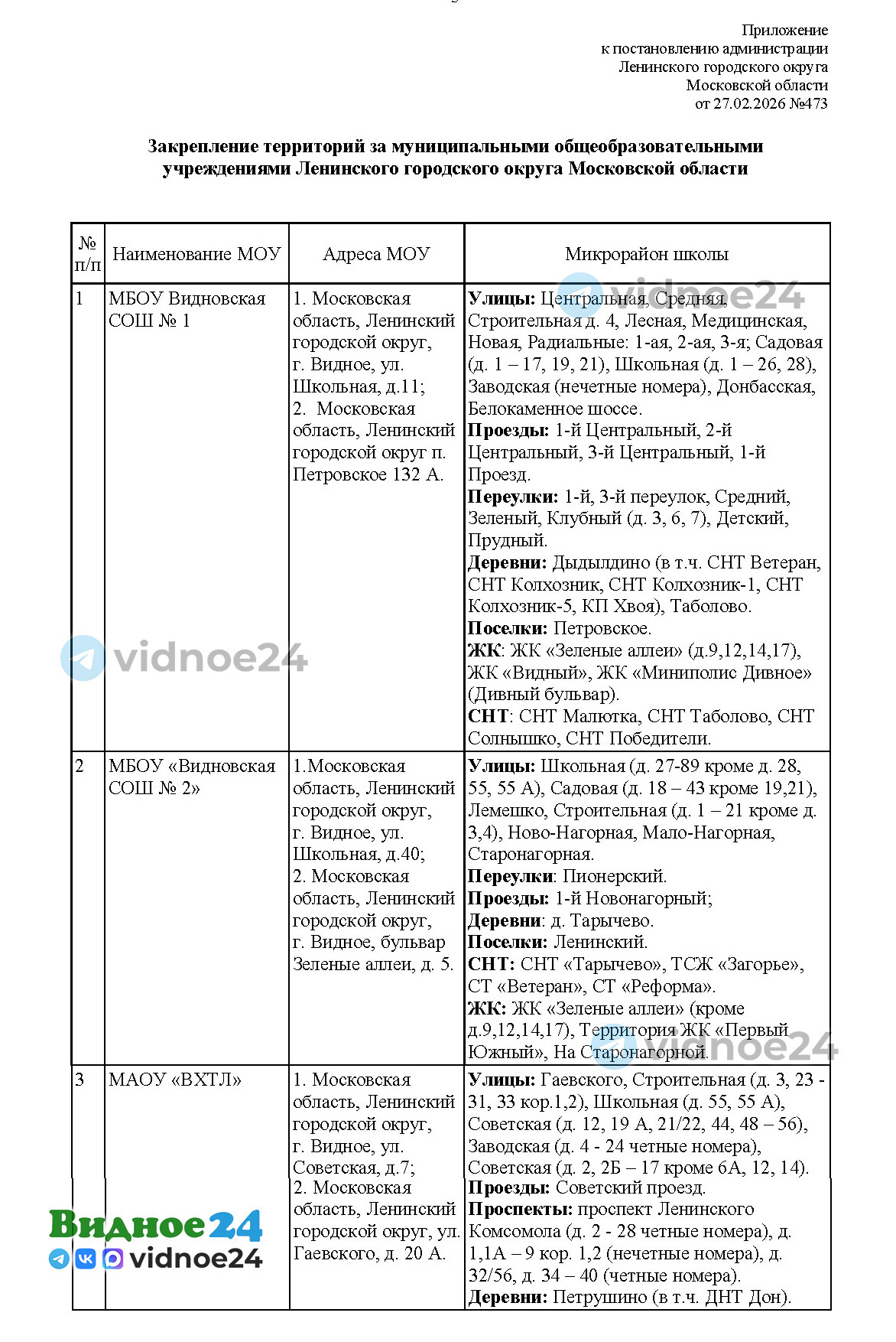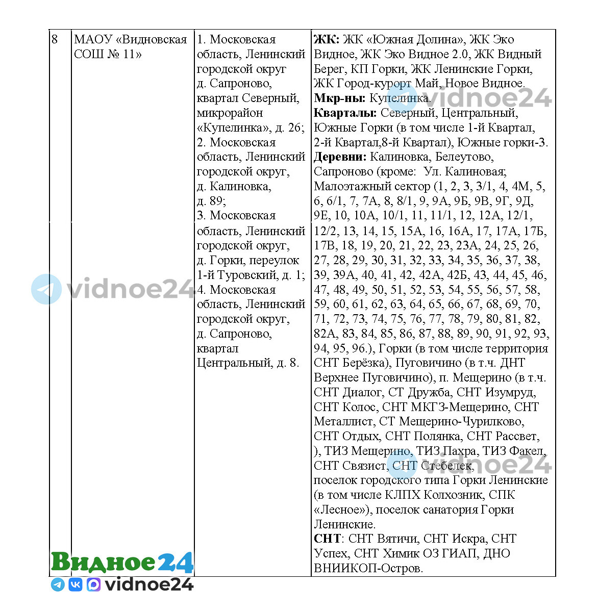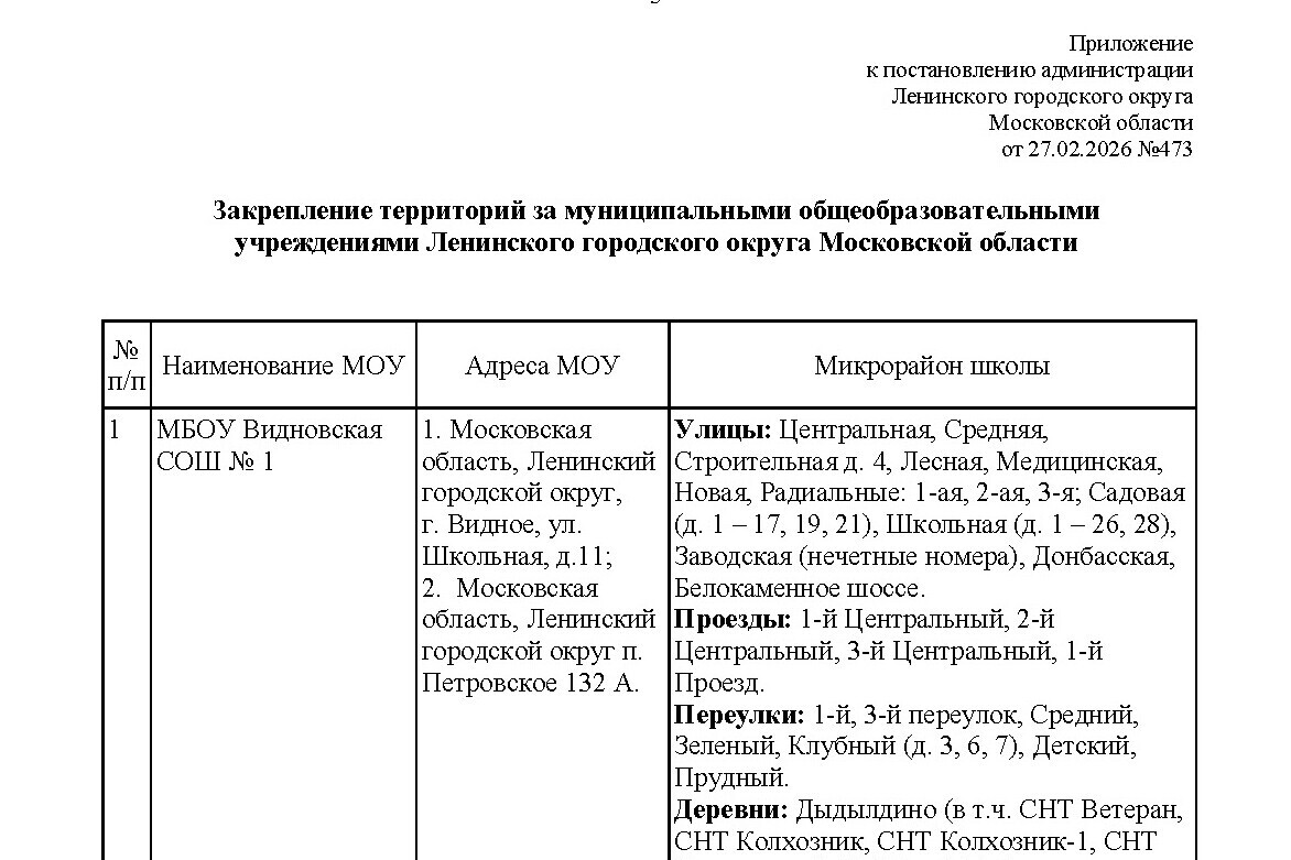 Администрация Ленинского городского округа обновила адреса, которые прикреплены к определенным образовательным учреждениям округа.